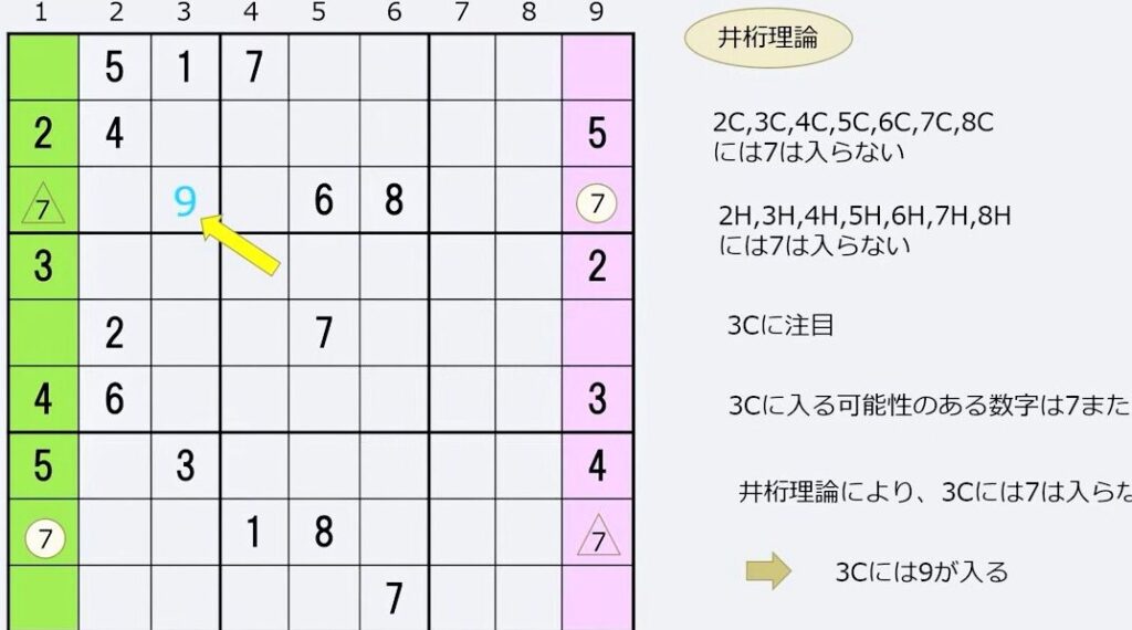 - X-Wingテクニック: 特定の数字が同じ行または列の二つのセルにだけ存在し、他の行や列にその数字がない場合、この技法を使って数字を確定できます。