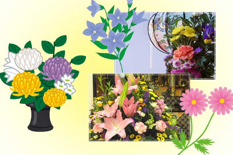 - 花の種類に注意: 菊や百合が一般的ですが、用途によって選ぶ花が異なるため、注意します。