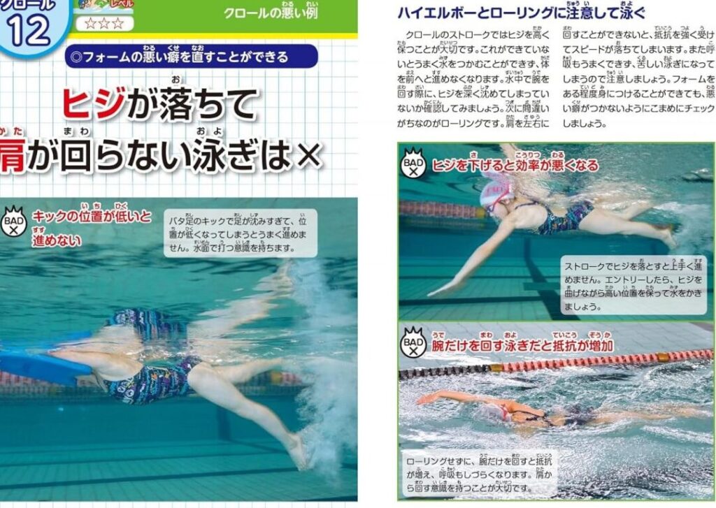 - 平泳ぎ: 腕と脚を規則的に動かしながら泳ぐ技術が求められます。