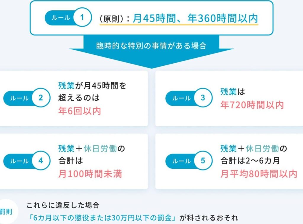 - 過労の防止: 過度な残業を防ぐため、1ヶ月の残業時間を45時間以下に制限する。