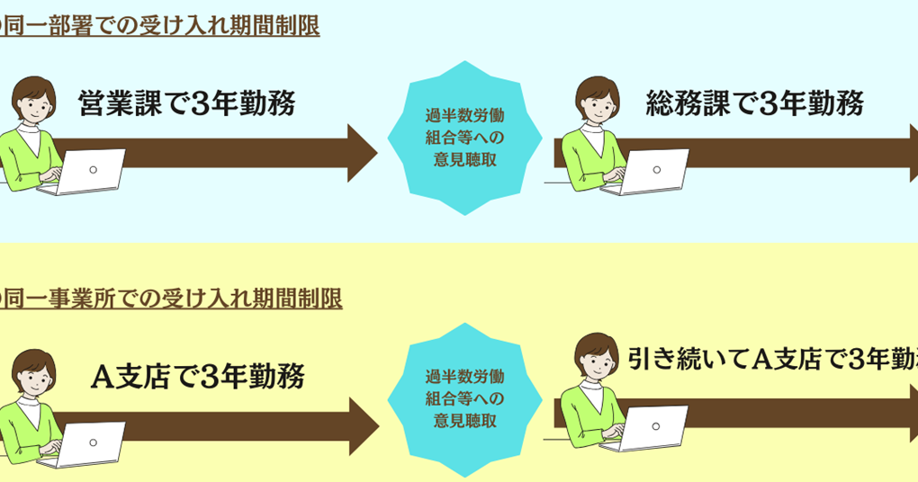 - 3年経過後は、同じ派遣先での雇用契約が更新できない。