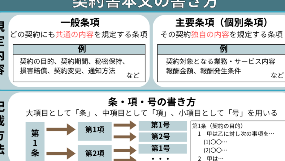 契約書は、当事者間の合意を保障するために重要な役割を果たします。そのため、契約書の基本構成は明確で、必要な要素が確実に含まれることが求められます。