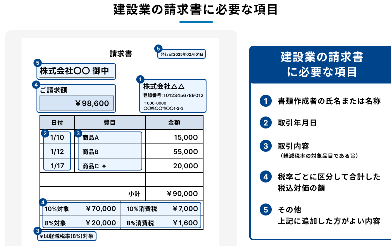 日本の商法や消費税法には、請求書に必要な要素が明記されています。特に重要な要素は以下の通りです。
