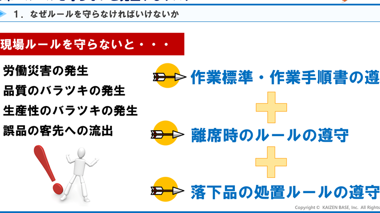- 安全性の低下:ルール違反は、事故や怪我のリスクを高める。特に危険物の取り扱いや機械の操作に関するルールを無視すると、重大な事故を引き起こす可能性がある。