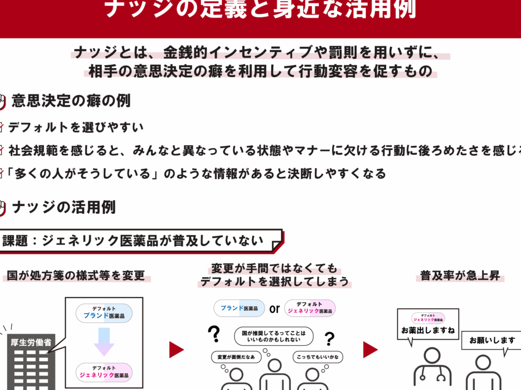行動経済学では、デフォルトルールの重要性が強調されている。人は無意識にデフォルトの選択に従う傾向があるため、デフォルト設定を利用することで、望ましい行動を引き出すことが可能となる。たとえば、これにより次のような成果を得られる。