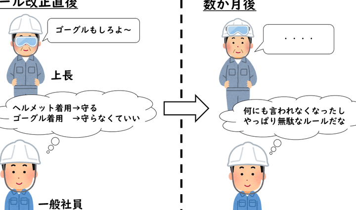 - 透明性の確保: ルールの変更に関する情報を全社員に共有し、理解を促進する。