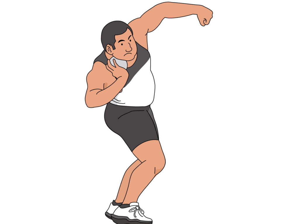 - 投擲姿勢: 両手で砲丸を持ち、肩と脚の力を利用してボールを放り投げます。