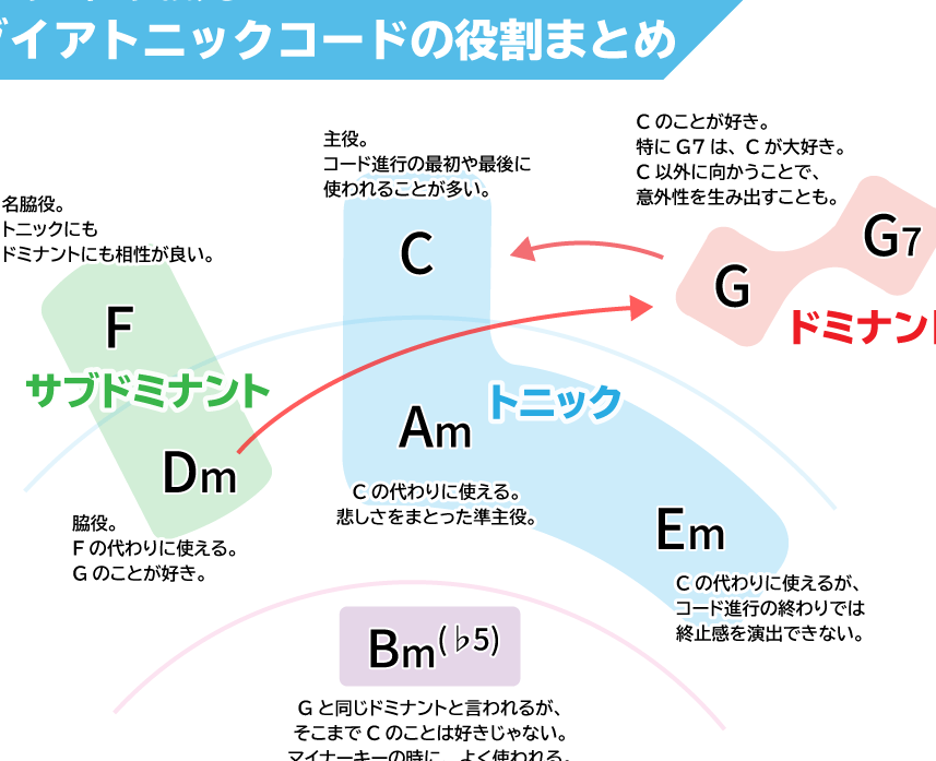- ダイアトニックコードの活用: 各調における7つのコードを使用し、調和を生み出します。