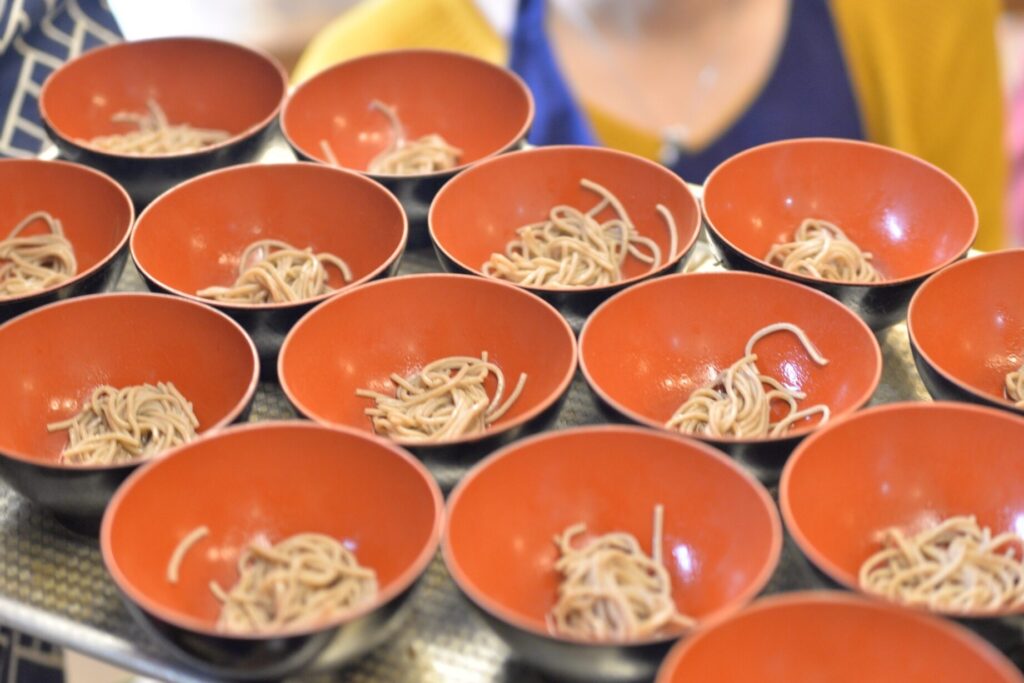 また、食事中のマナーも大切にしたいです。食べた器は、終了の合図としてひっくり返します。このルールを守ることで、他の参加者もスムーズに楽しめます。他には、周囲との競争の精神を持つことが重要です。競うことで、楽しさが増し、より多くのそばを味わう意欲が湧きます。