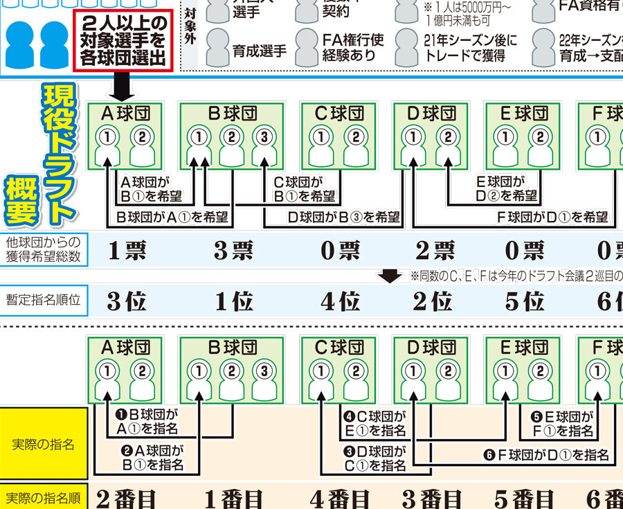- 対象選手の定義:ドラフト対象に含まれる選手は、チーム契約を結んでいる現役選手に限定されていました。