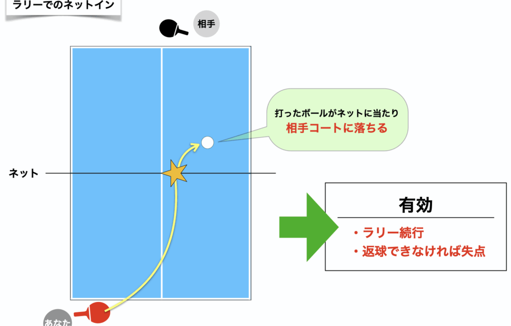 - 相手がネットにかける: サーブやリターン時にボールがネットに触れる場合。