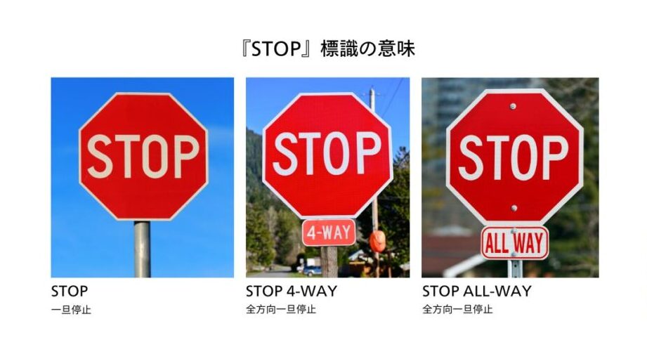 - 停止標識: 完全に車両を止め、その後進行可。