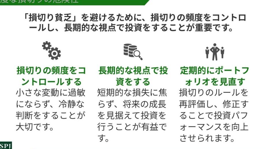 - 時間軸: 株を保有する期間を決定し、一定期間内に株価が回復しない場合に売却。具体的には、1ヶ月を目安にすることがある。