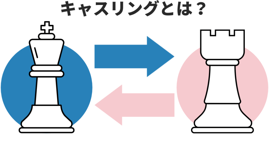 キャスリングは、王とルークを同時に動かす特別な手段です。王は2マス横に移動し、ルークは王の移動した位置を越えて隣接するマスに移動します。このルールにはいくつかの条件があります。まず、両方の駒がまだ動いていないこと。次に、王がチェックされていないこと、さらにルークと間のマスが攻撃されていない必要があります。これにより、王を安全な位置に移動させつつ、ルークも活用できるのです。