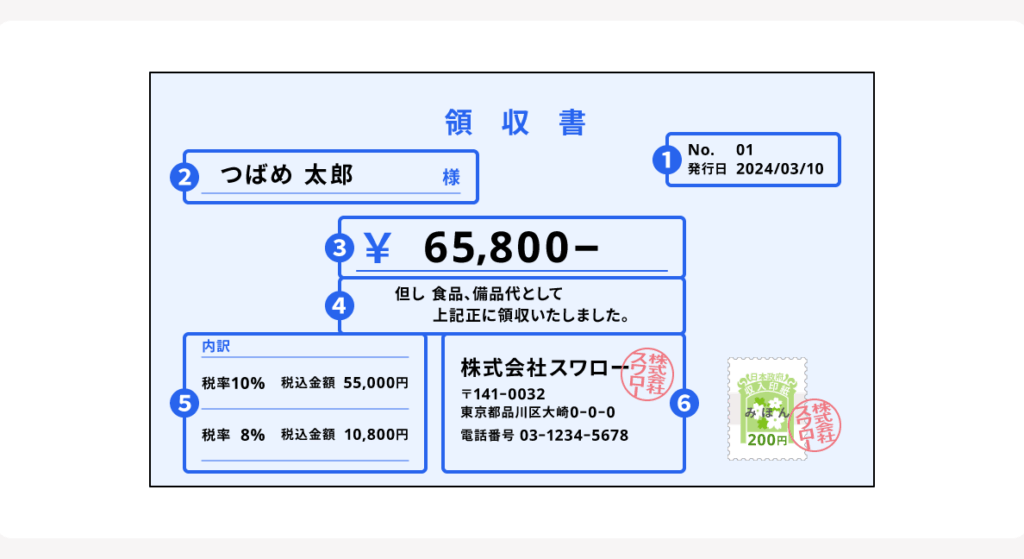 - 連番:発行する領収書には連番を付けて、管理しやすくします。