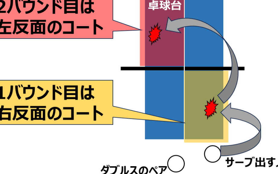 - ボールはサーバーの側にバウンドし、その後受け手の側にバウンドする必要がある。