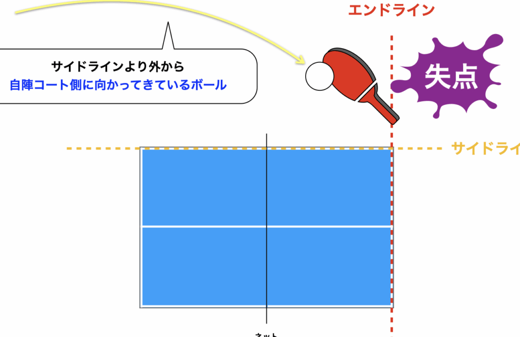 - 相手がボールを返すことができず、コート外に飛ばした場合、ポイントが得られます。