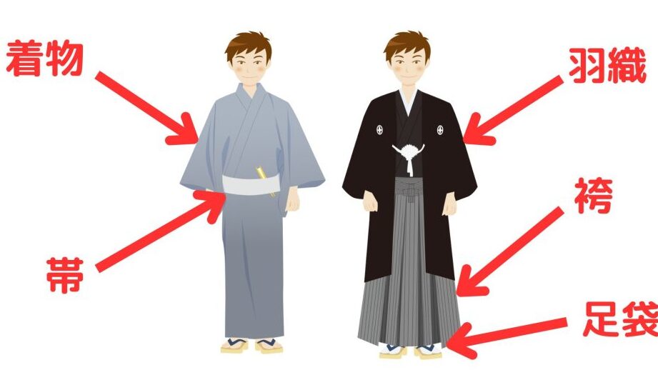 男性の着物には主に「羽織」や「袴」、「着物」の3つがあります。これらの特徴を以下に示します。