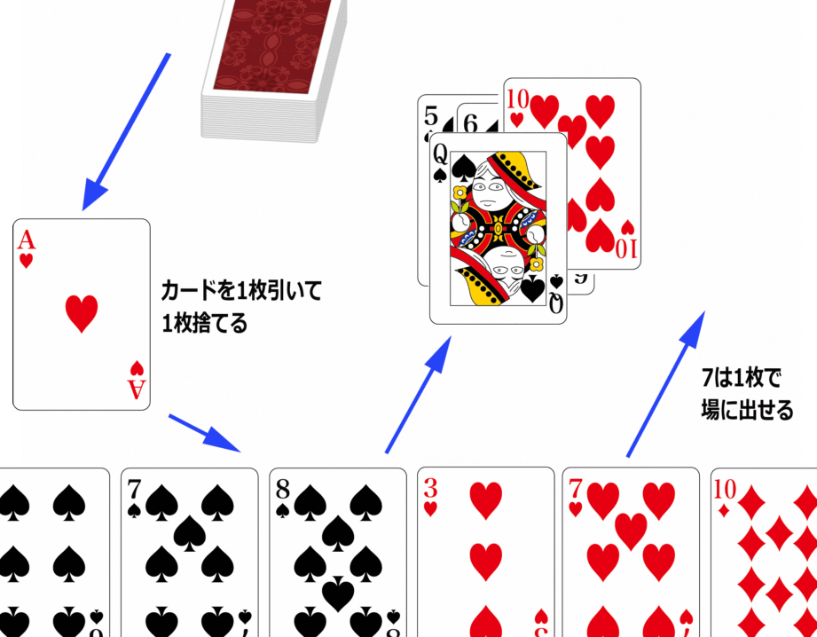 - カードの組み合わせを予測: 自分が捨てたカードや他のプレイヤーの手札を予測し、相手が何を狙っているか考えつつプレイします。