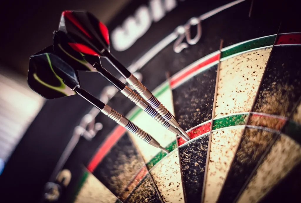 ダーツを正確に投げることが、得点を伸ばす鍵です。しっかりとした技術と戦略が要求されます。