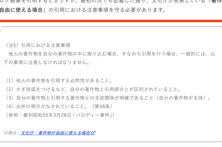 - 引用の量:全体の文脈に対して、引用する部分が過剰でないことが重要です。
