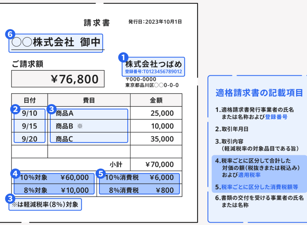 - 請求書番号: 一意の請求書番号を付与し、管理を容易にします。