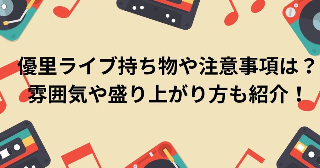 また事前準備をしっかり行うことで、ライブの感動を一層引き立てることができるでしょう。優里のパフォーマンスを心から楽しむために、ルールを意識しながら素晴らしい時間を過ごしましょう。これからのライブでの体験が、私たちの心に残る素敵な思い出となることを願っています。