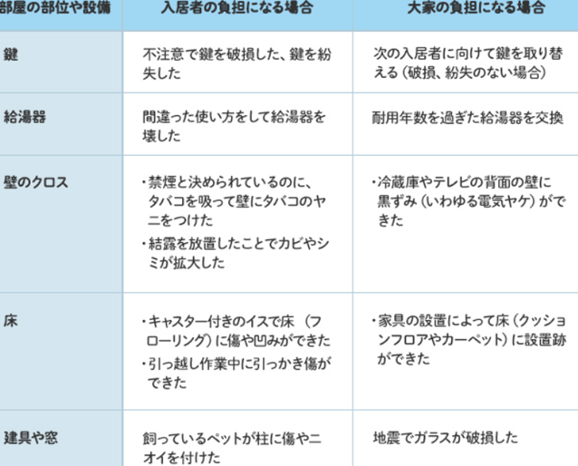 - 物件の損傷がどのくらいが通常の摩耗に当たるのか、ルールが不明確。