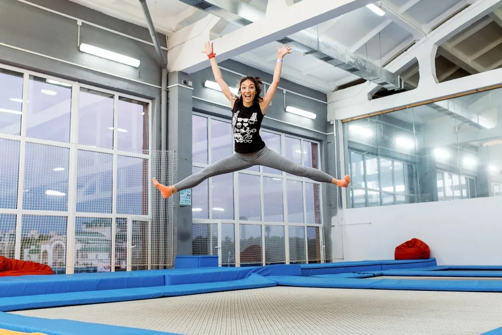 トランポリンの設定にも注意が必要です。 ジャンプする前に、トランポリンの状態を確認します。特に、バネやマットの状態、安全バーの設置を確認することで、安全な環境での競技が可能になります。