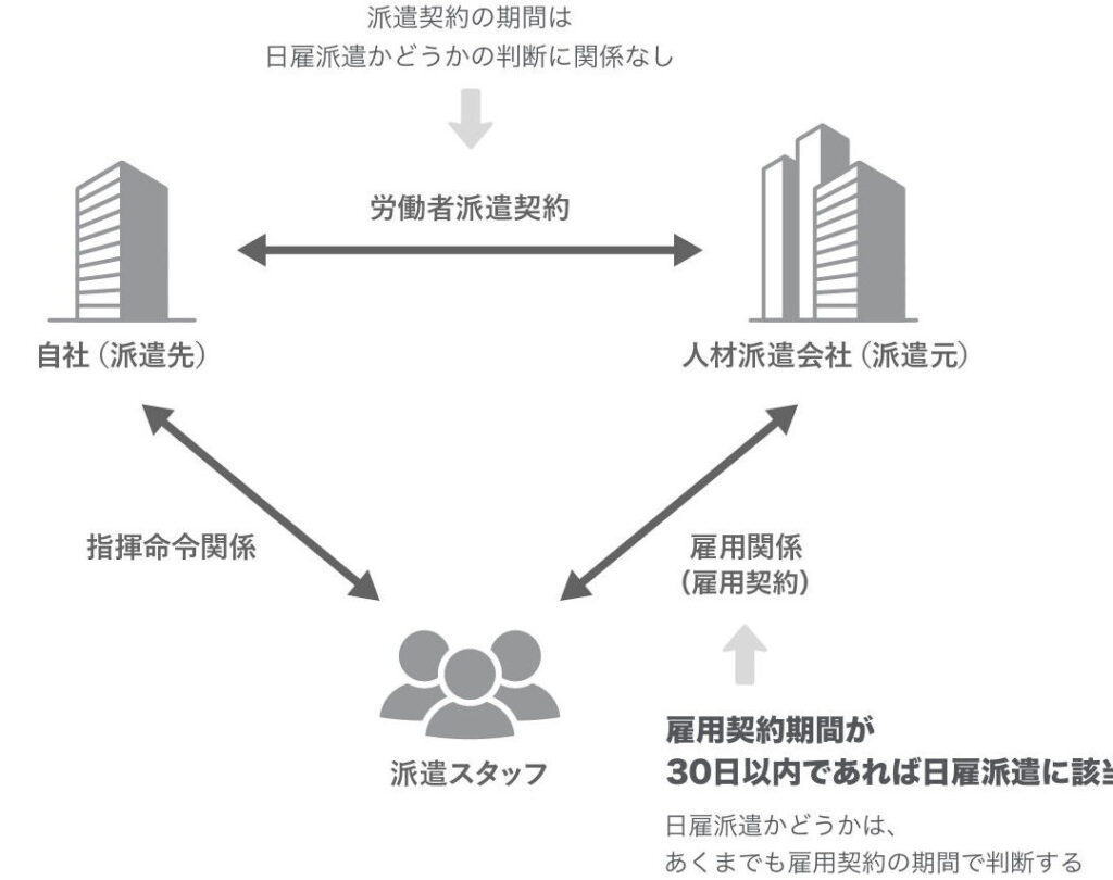 派遣労働者は、雇用契約が30日を超える場合、一定の条件が適用されます。例えば: