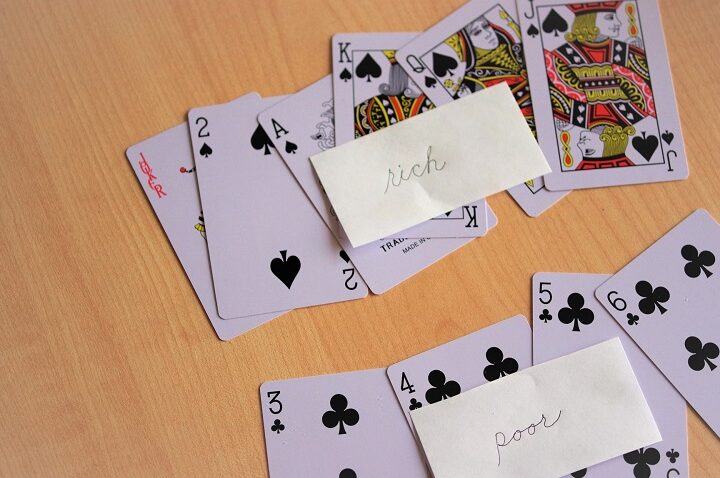 大富豪には、標準的なトランプデッキが必要です。通常、52枚のカードが使用され、ジョーカーは使用しないことが一般的です。ゲーム開始前には、次の準備を行います: