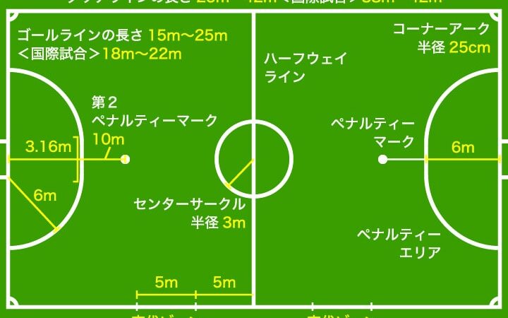- ボールを手に持つエリア: ゴールキーパーは自陣内のみでボールを持つことが許されています。