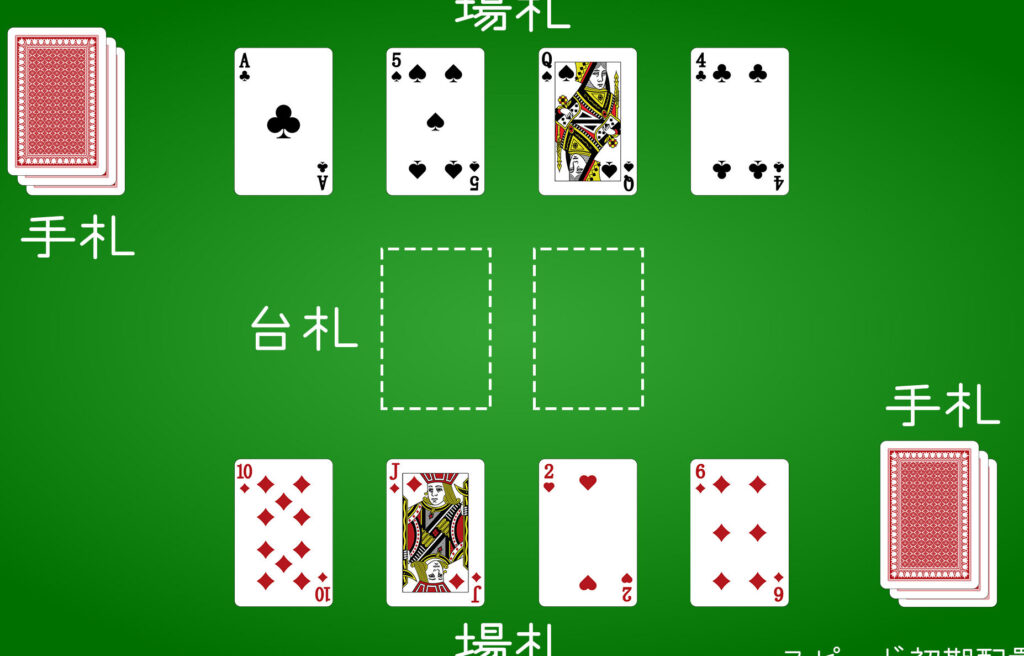 カードの配り方には、特定のルールがあります。最初に、52枚のカードを使用します。各プレイヤーは、裏向きで5枚ずつカードを受け取ります。そして、残りのカードは山札として中央に置きます。次に、各プレイヤーは、山札から1枚を表向きに置いてスタートします。これで、準備は整いました。