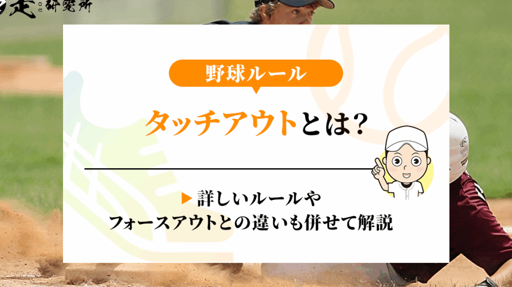 タッチアウトとは、守備側の選手がボールを持っている状態で、走者に触れることによって走者をアウトにする行為を指す。このルールは、走者が塁に到達する前にタッチされると適用される。具体的には、以下のような場面で発生する。