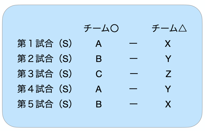 このように、各試合は勝敗によって得点が加算され、最終的にチーム全体のポイントが比較されます。