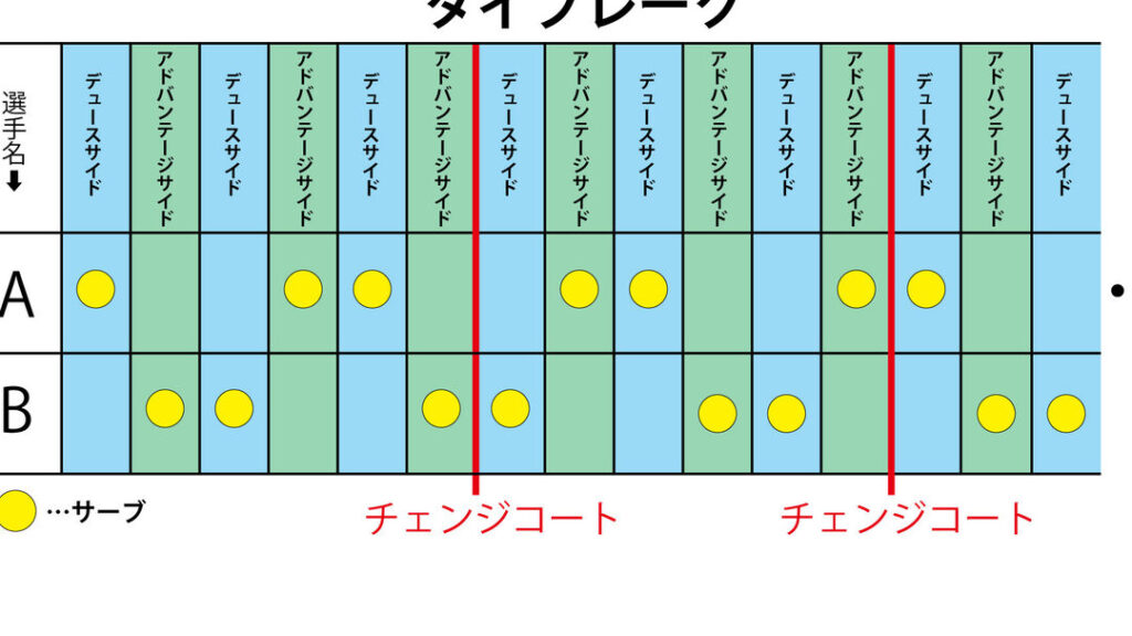 さらに、タイブレークは必ずしも7ポイント先取ではない。規定により、選手が7ポイントを獲得しても、相手との差が2ポイントないと勝利とはならない。この点を見落とすと、試合の理解が難しくなることがある。