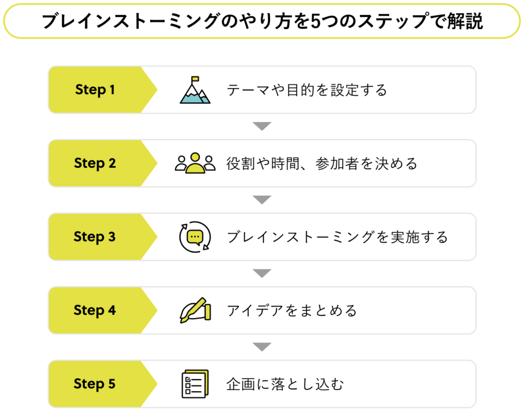 効果的なブレインストーミングには、いくつかの重要な要素があります。これらの方法を適切に実施することで、創造的なアイデアを生み出す環境を整えます。