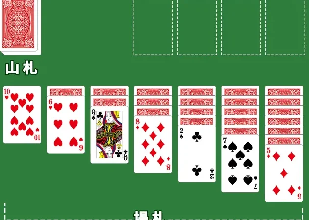 スパイダーソリティアは、2つのデッキ(104枚のカード)を使用するより複雑なバージョンです。 10列にカードを配置し、プレイヤーは同じスートのカードを連続した順番に移動させることが求められます。8枚のカードを完全に揃えることでラウンドがクリアされます。戦略が重要で、カードの組み合わせを考えながらプレイする必要があります。