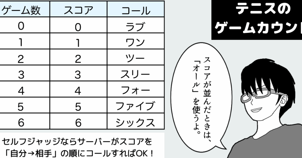 - タイブレーク時は、6ゲーム目の後にコートを変更します。