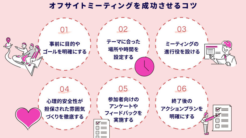 オフサイトミーティングの進行は、成功のために不可欠な要素です。効果的に進めるためには、計画的かつ規律あるアプローチが必要です。